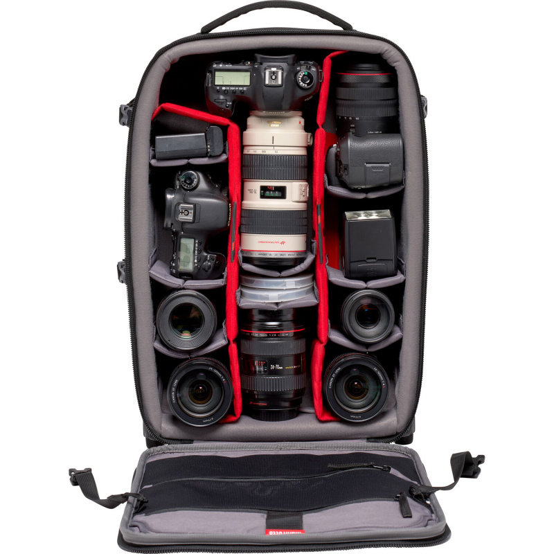 Вміщує бездзеркальну камеру з 70-200 мм, другу камеру, та до 5-6 об'єктивів.