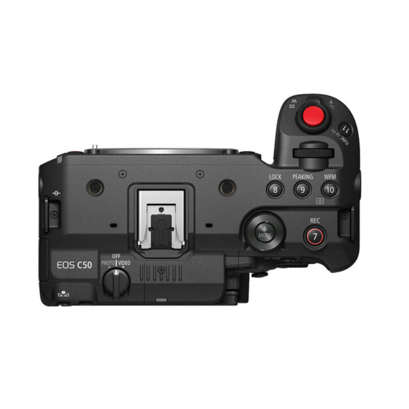Canon EOS C50 — перша кінокамеру EOS з функцією запису з відкритим затвором, яка використовує всю площу сенсора для максимального дозволу та гнучкості. Її повнокадровий CMOS-датчик і процесор DIGIC DV забезпечують зйомку у форматі RAW до 7K 60 кадрів в секунду, відео з високою частотою кадрів 4K 120p і 2K 180p, а також детальні 32-мегапіксельні фотографії.