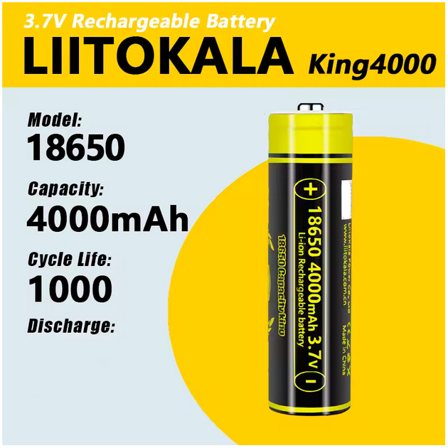 LiitoKala King4000 — это один из наиболее энергоёмких представителей аккумуляторов в формате 18650. Он выделяется высокой реальной ёмкостью, стабильной работой, низким саморазрядом и хорошей ценовой доступностью в своём классе. Благодаря качественной сборке и длительному сроку службы, аккумулятор станет надёжной основой для любых устройств, требующих высокого запаса энергии.