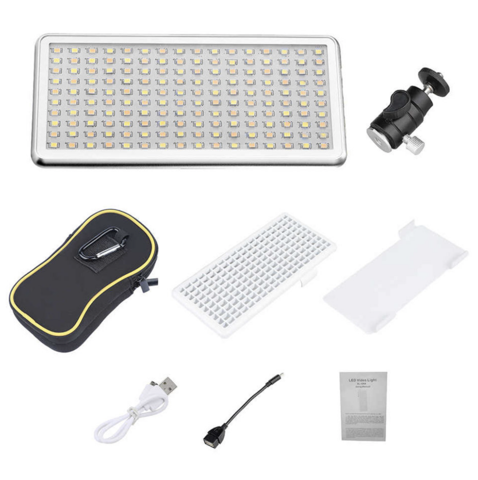 Nicefoto SL-120A 12W Pocket Video, колірна температура 3200-6500K, регульована яскравість серед 0% -100%, CRI≥96; На екрані відображається значення колірної температури, потужності, що спрощує експлуатацію. LED панель можна використовувати як заповнююче світло, широко застосовуване при відеозйомці, інтерв'ю, прямій трансляції, професійній фотографії.