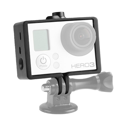 Рамка-держатель для установки камер HERO4, HERO3 и GoPro HERO3+ без защитного бокса на крепления стандарта GoPro. Данная модель спроектирована для эксплуатации с микрофонами Boya BY-LM20 - в торцевой части конструкции предусмотрено отверстие для аудио-разъема. На корпусе есть отверстия для кнопок, а на верхней грани дополнительное резьбовое крепление 1/4 дюйма.