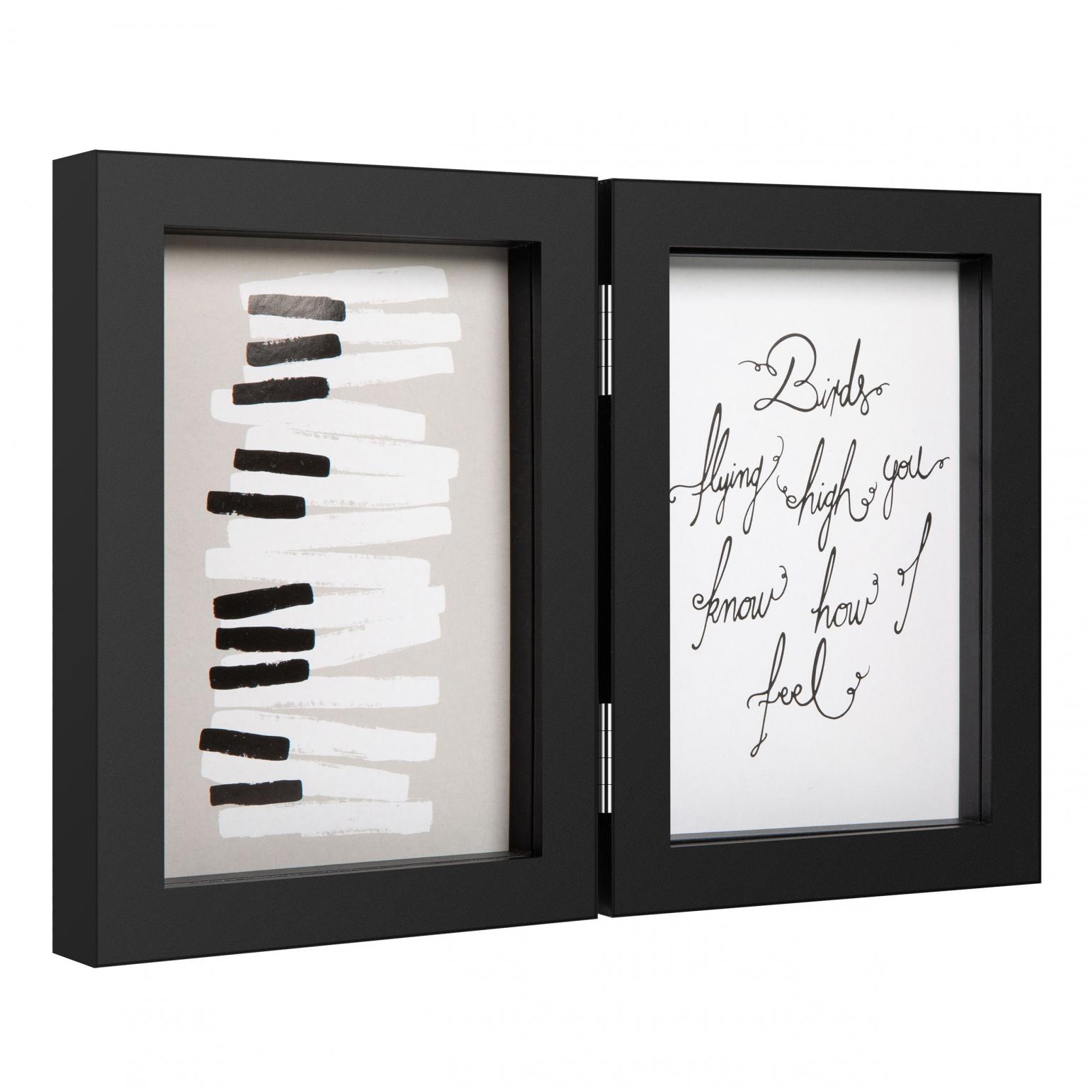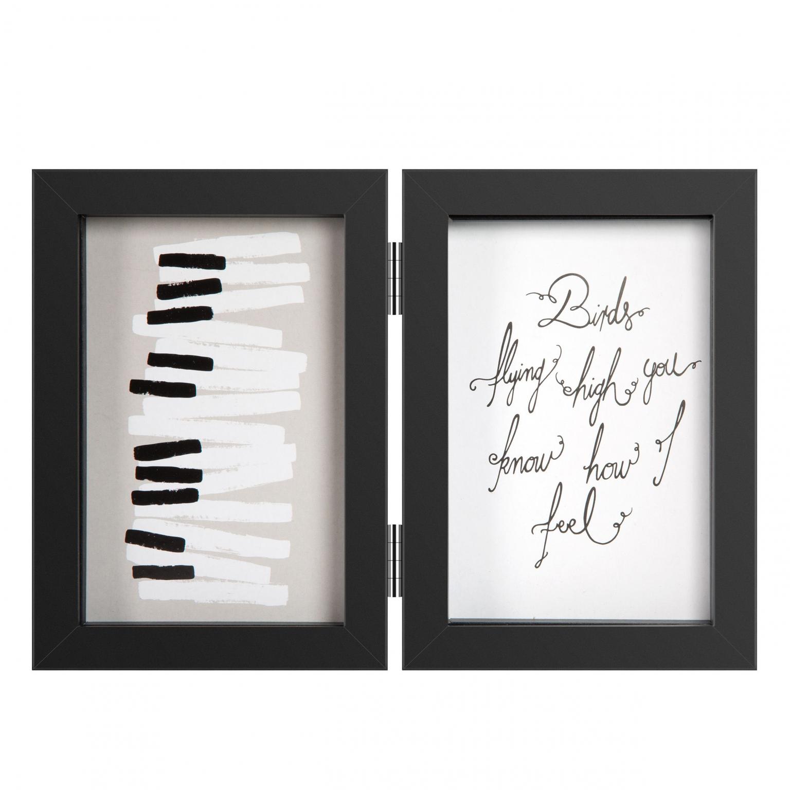 Коллажная рамка Henzo Piano Double Swing подходит для 2 фотографий размером 10x15 см. Паспарту не прилагается. Рамку можно повесить на стену в портретном или альбомном формате или поставить на шкаф. Сама рама изготовлена из высококачественного МДФ.