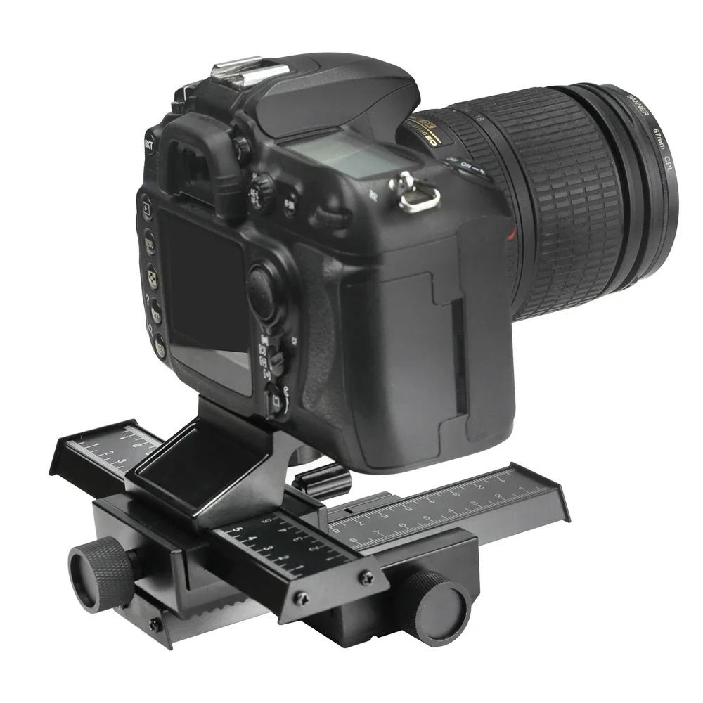 Две направляющие обеспечивают плавное перемещение по 4 осям слева направо или вперед-назад. Ручки с винтами позволяют точно регулировать масштаб и находить точные положения камеры для макросъемки, съемки крупным планом и замедленной съемки.